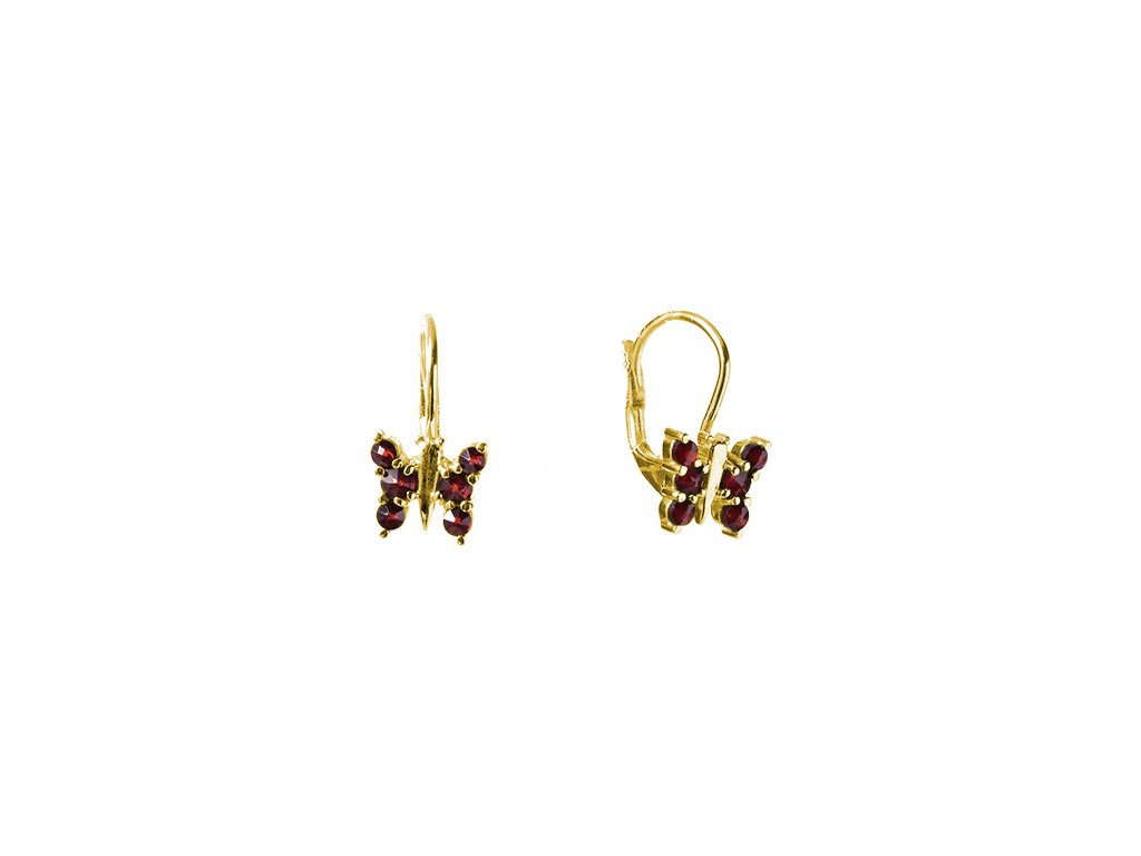 Silver earrings with czech garnet, gold plated, animal - butterfly