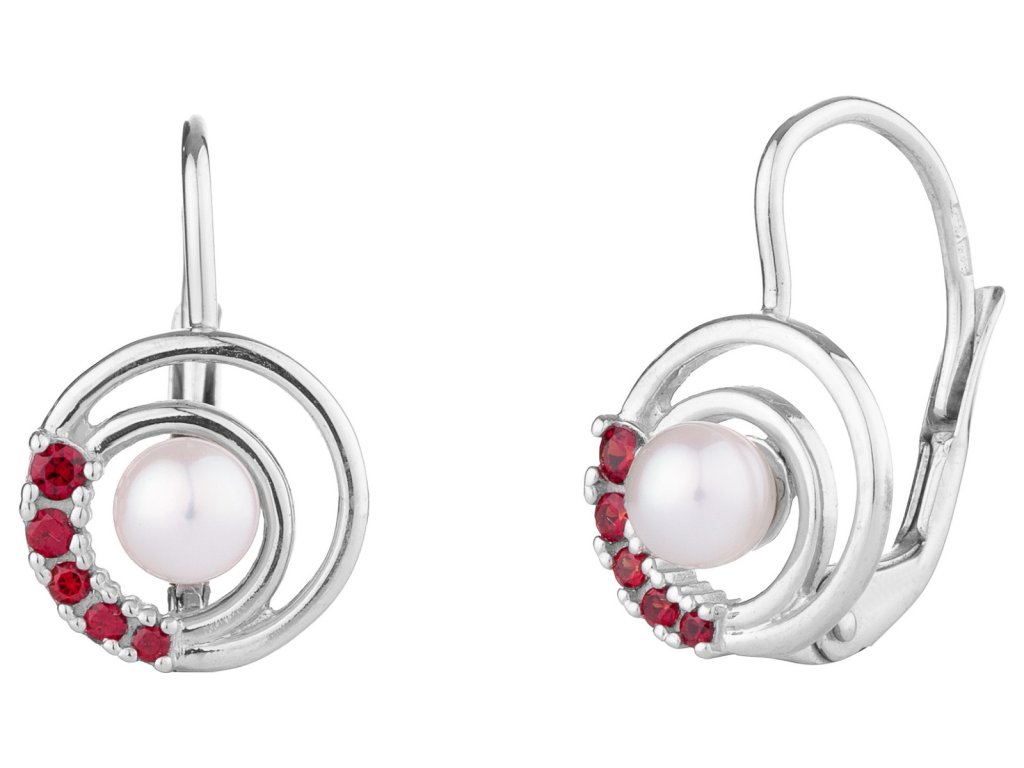 Silver earrings with czech garnet Pe, rhodium plated - circle