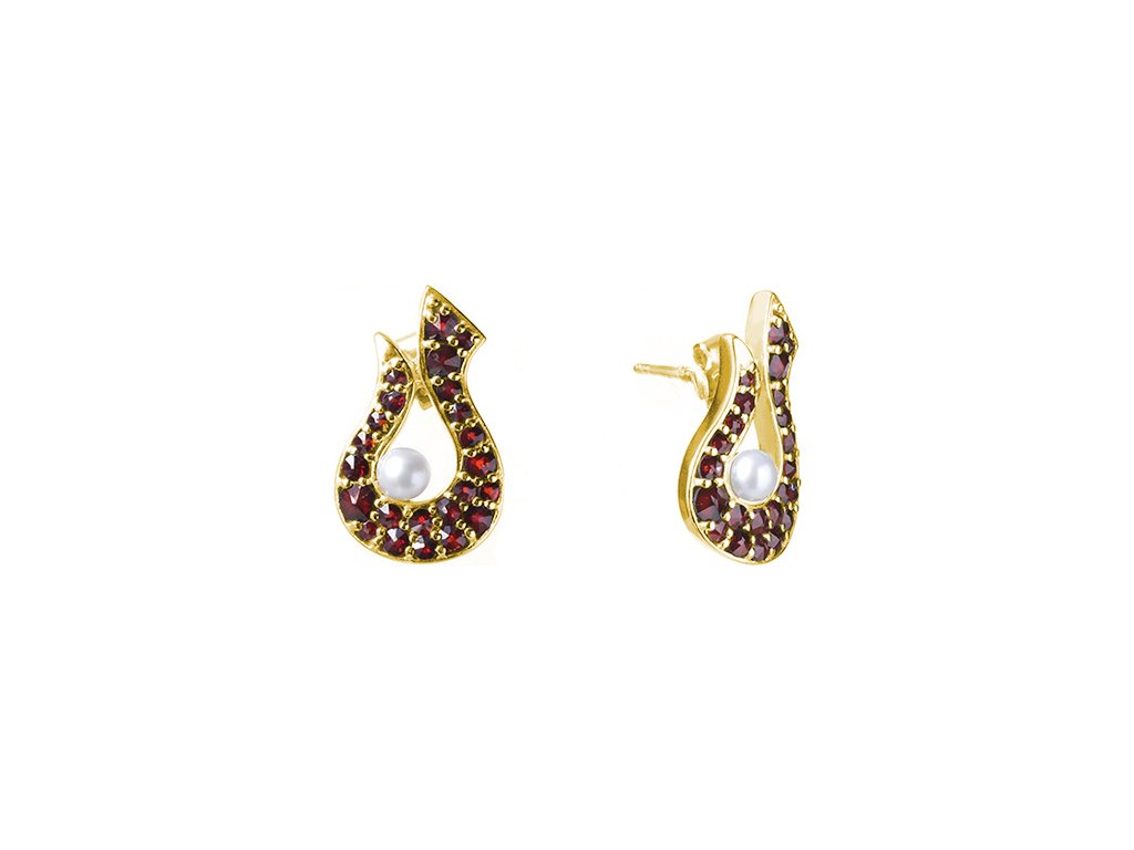 Silver earrings with czech garnet and pearl, gold plated