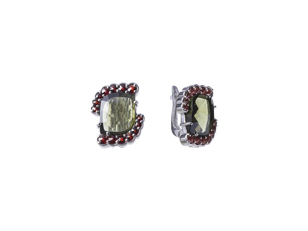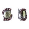 Silver earrings with czech garnet and moldavite, rhodium plated