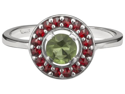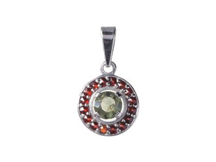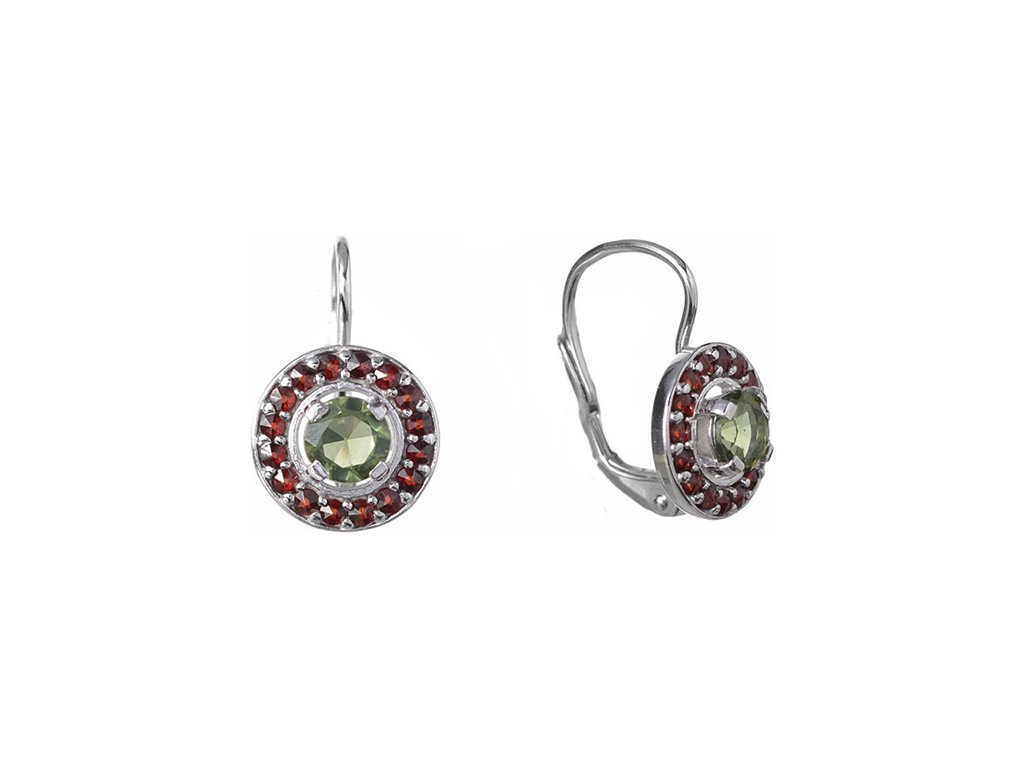 Silver earrings with czech garnet and moldavite, rhodium plated - circle