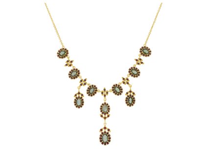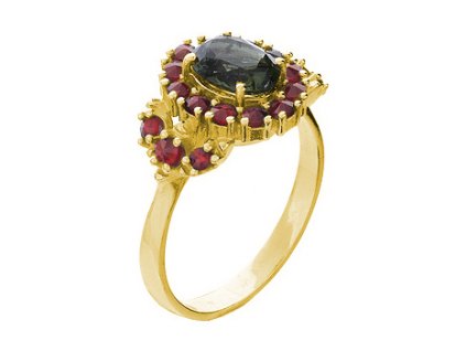 Silver earrings with czech garnet and moldavite, gold plated - oval