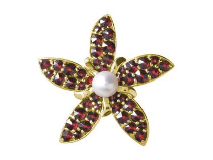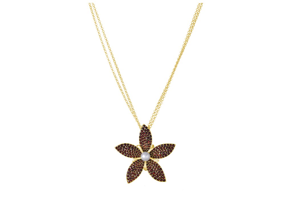 Silver necklace with czech garnet and pearl, gold plated - flower