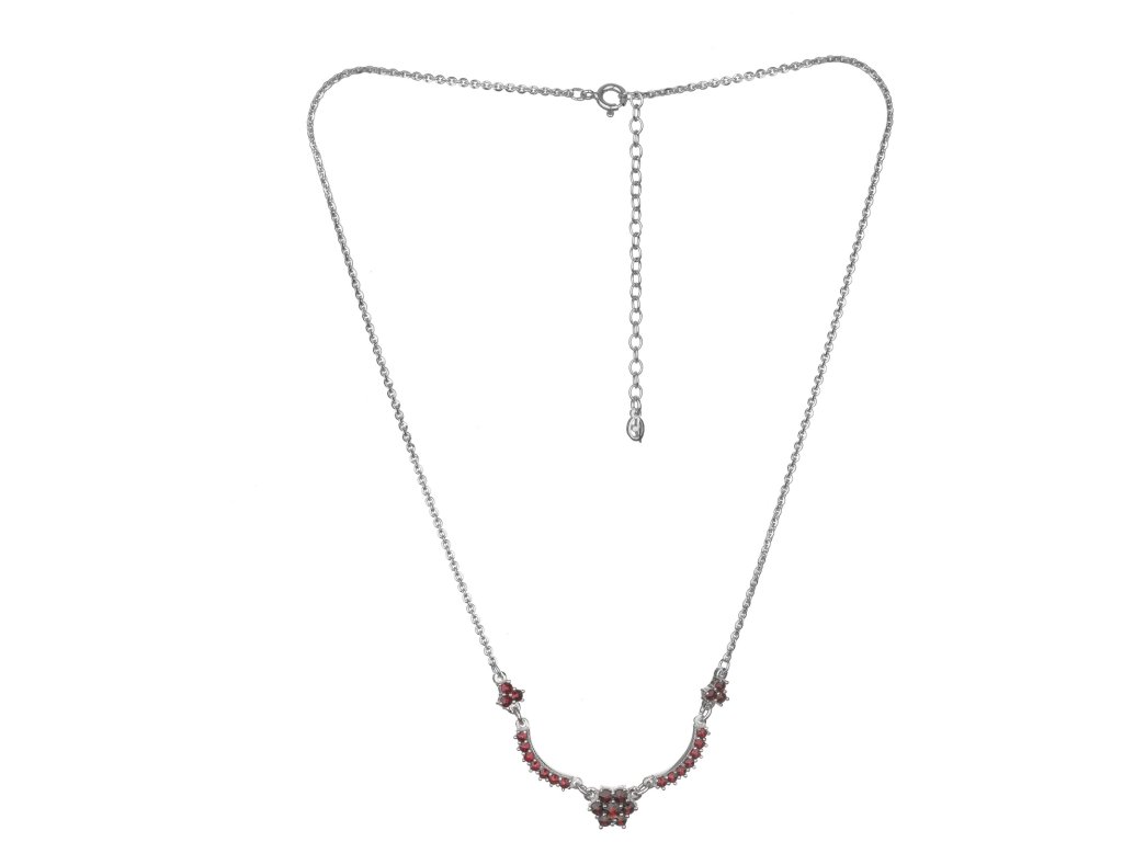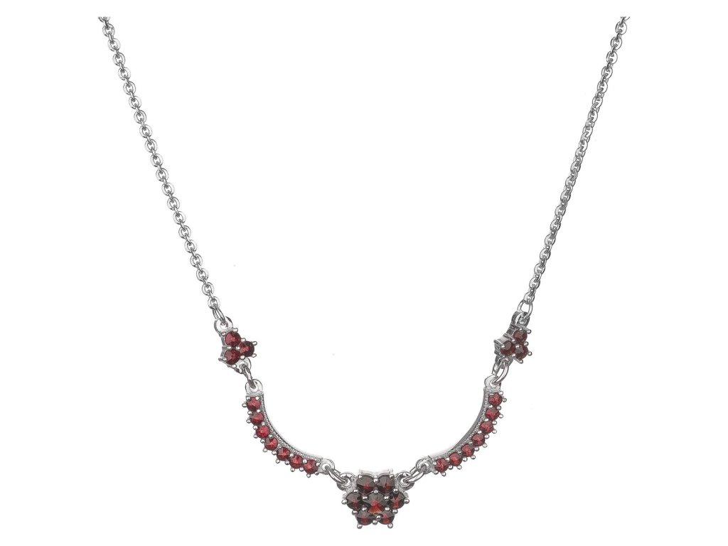 Stříbrný náhrdelník s českým granátem, rhodiovaný - květina