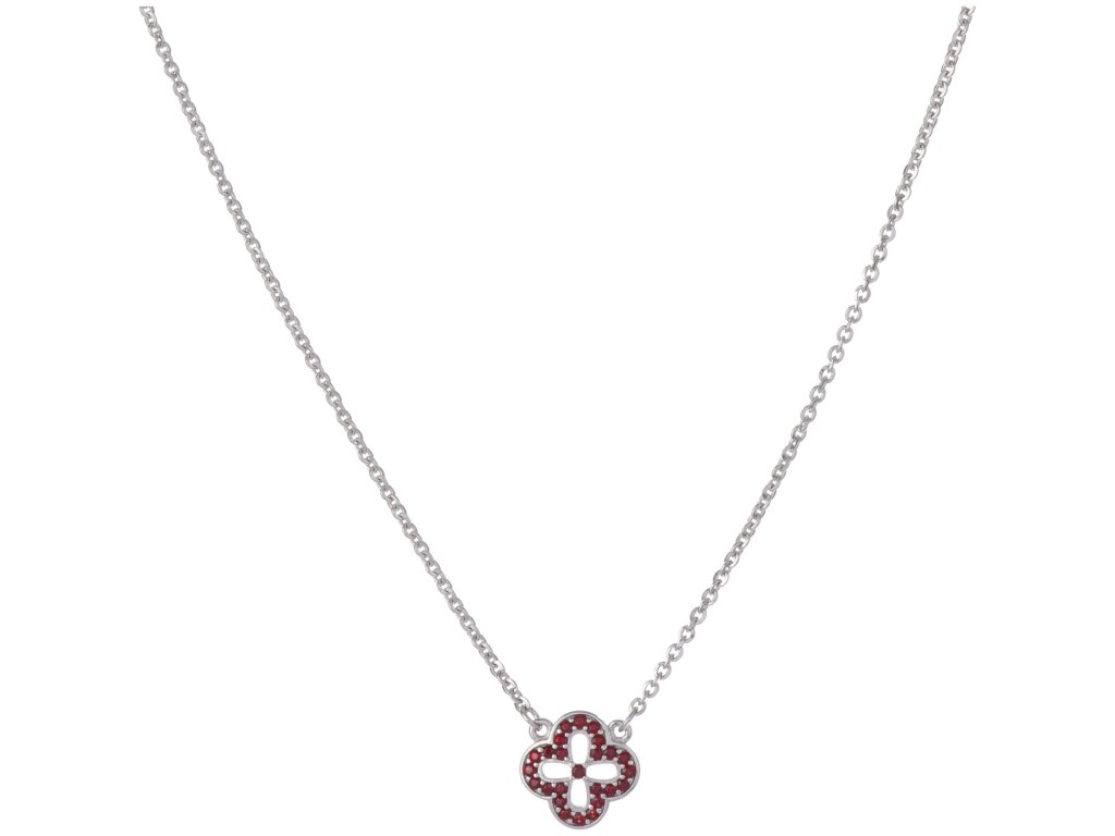 Silver necklace with czech garnet, rhodium plated - flower