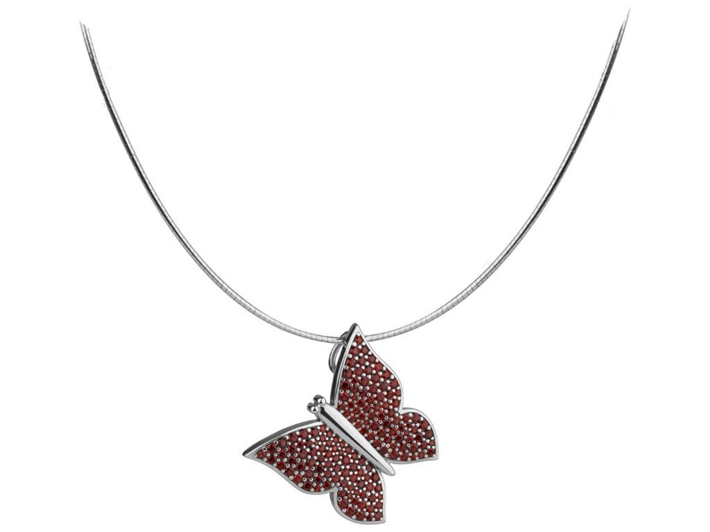 Silver necklace with czech garnet, rhodium plated, animal - butterfly
