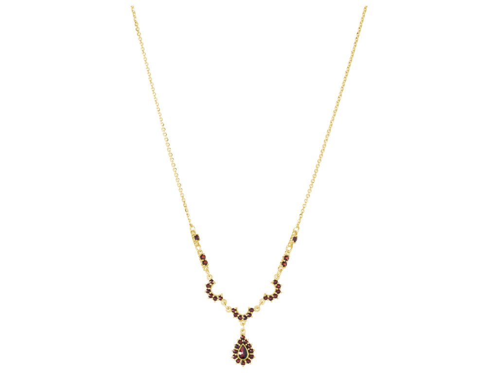 Silver necklace with czech garnet, gold plated - drop
