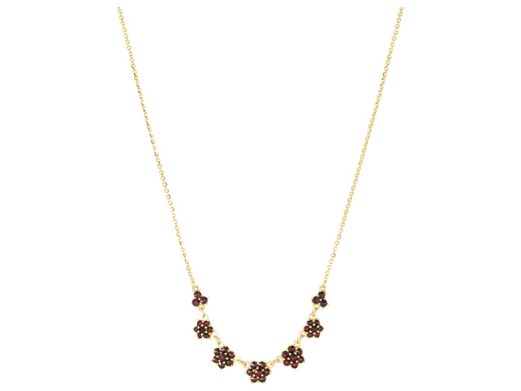 Silver necklace with czech garnet, gold plated - flower