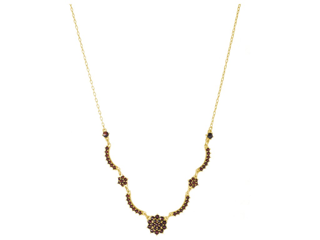 Silver necklace with czech garnet, gold plated - flower