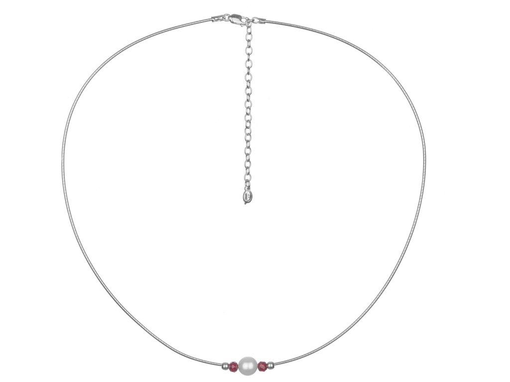Silver necklace with czech garnet and pearl, rhodium plated