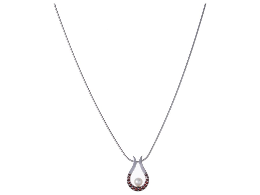Silver necklace with czech garnet and pearl, rhodium plated - drop