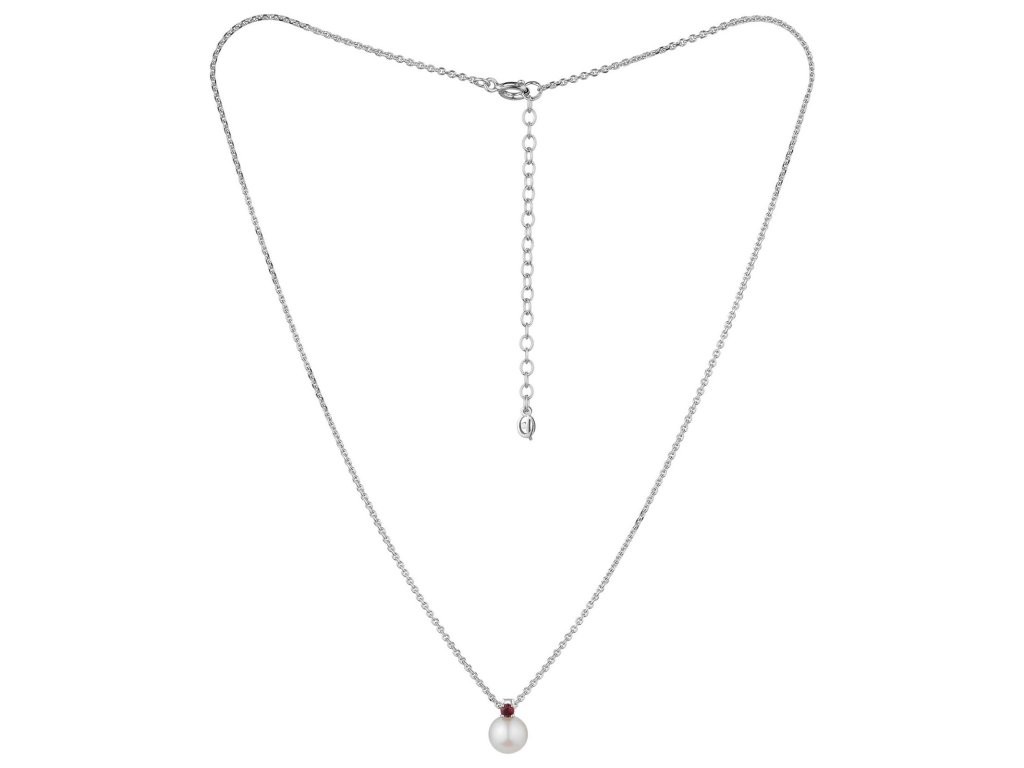 Silver necklace with czech garnet and pearl, rhodium plated