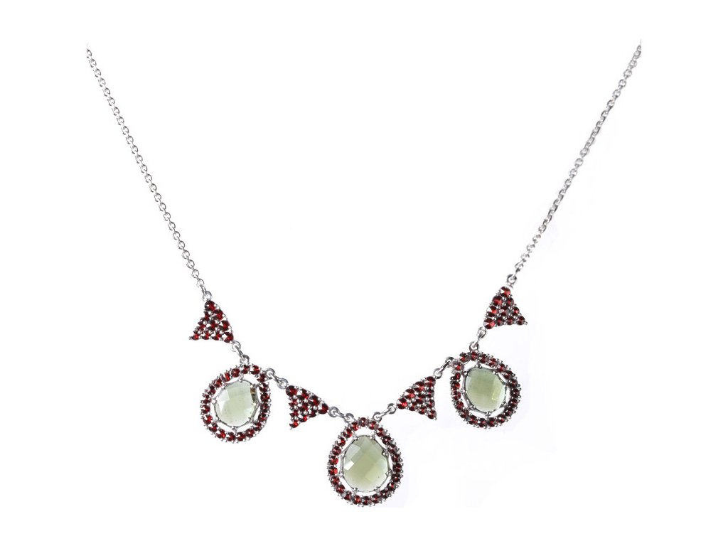 Silver necklace with czech garnet and moldavite, rhodium plated - drop