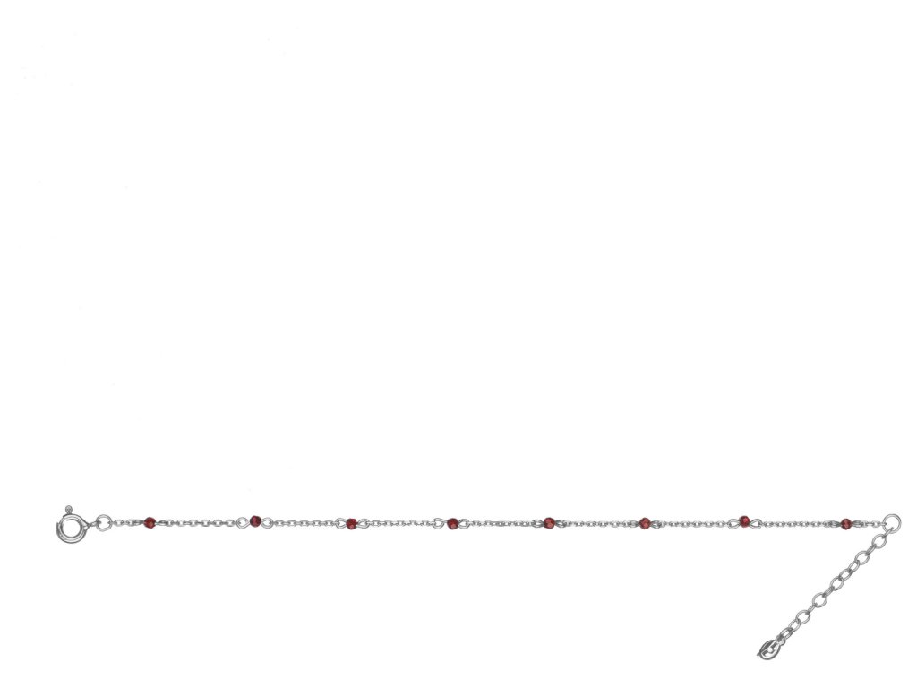 Tento elegantní náramek je vyroben ze stříbra (Ag 925/1000) a zušlechtěn rhodiováním. Je zdoben českým granátem o velikosti 2,4 mm.