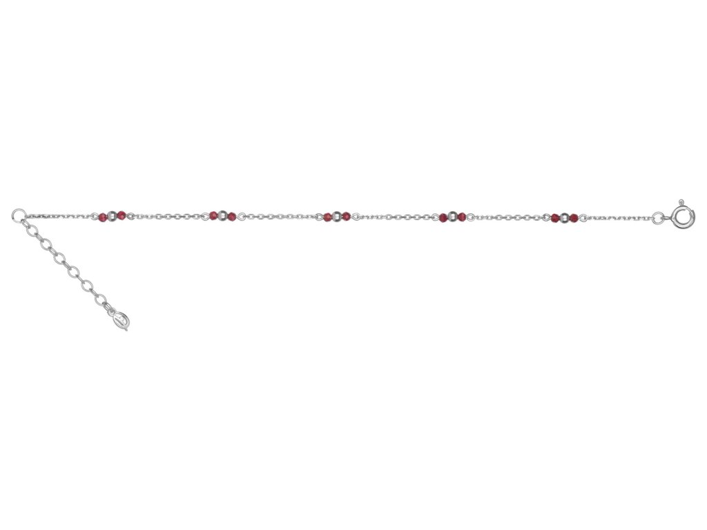 Silver bracelet with czech garnet, rhodium plated