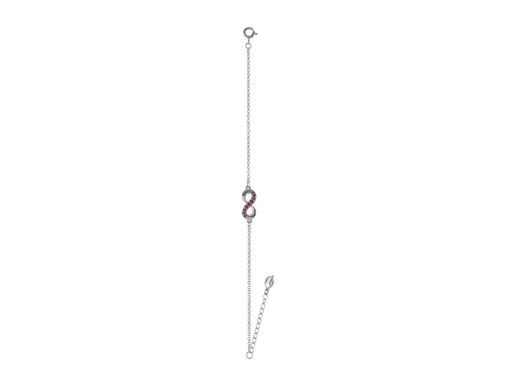 Silver bracelet with czech garnet, rhodium plated - infinity
