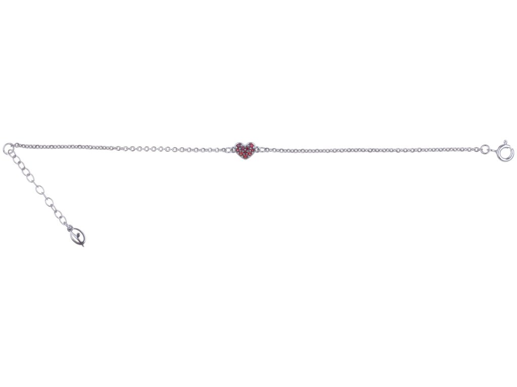 Silver bracelet with czech garnet, rhodium plated - heart
