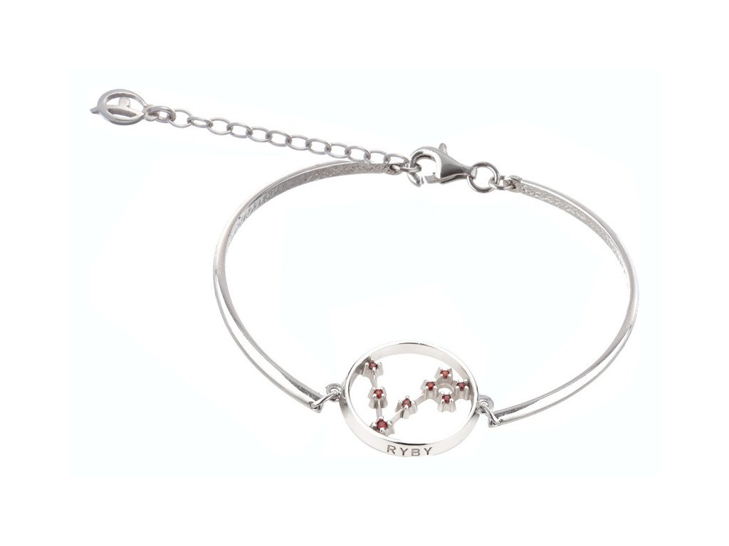 Silver bracelet with czech garnet, rhodium plated, zodiac sign - fish