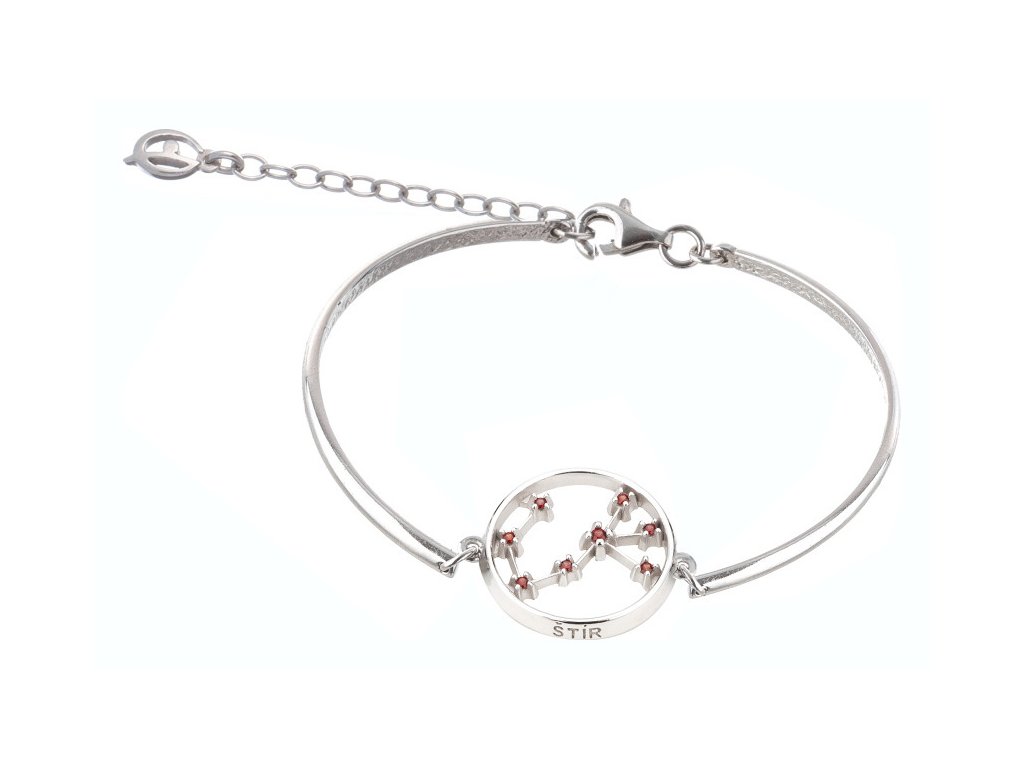 Silver bracelet with czech garnet, rhodium plated, zodiac sign - scorpio