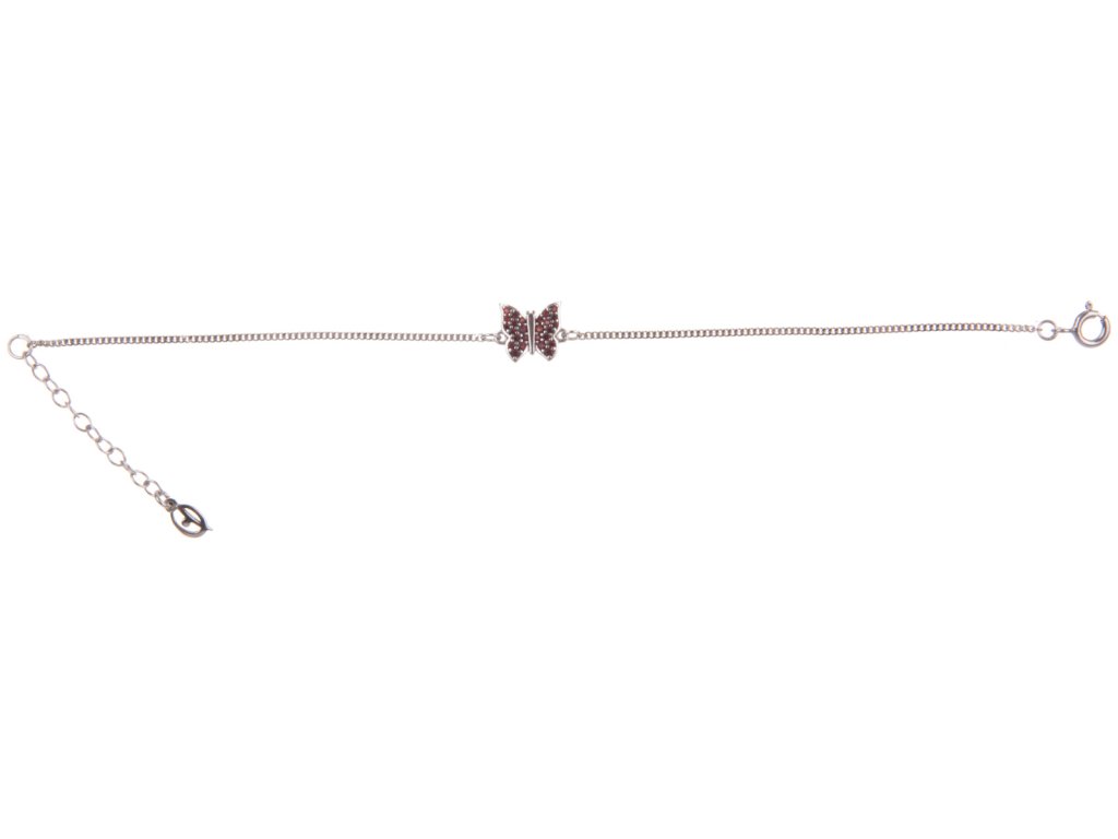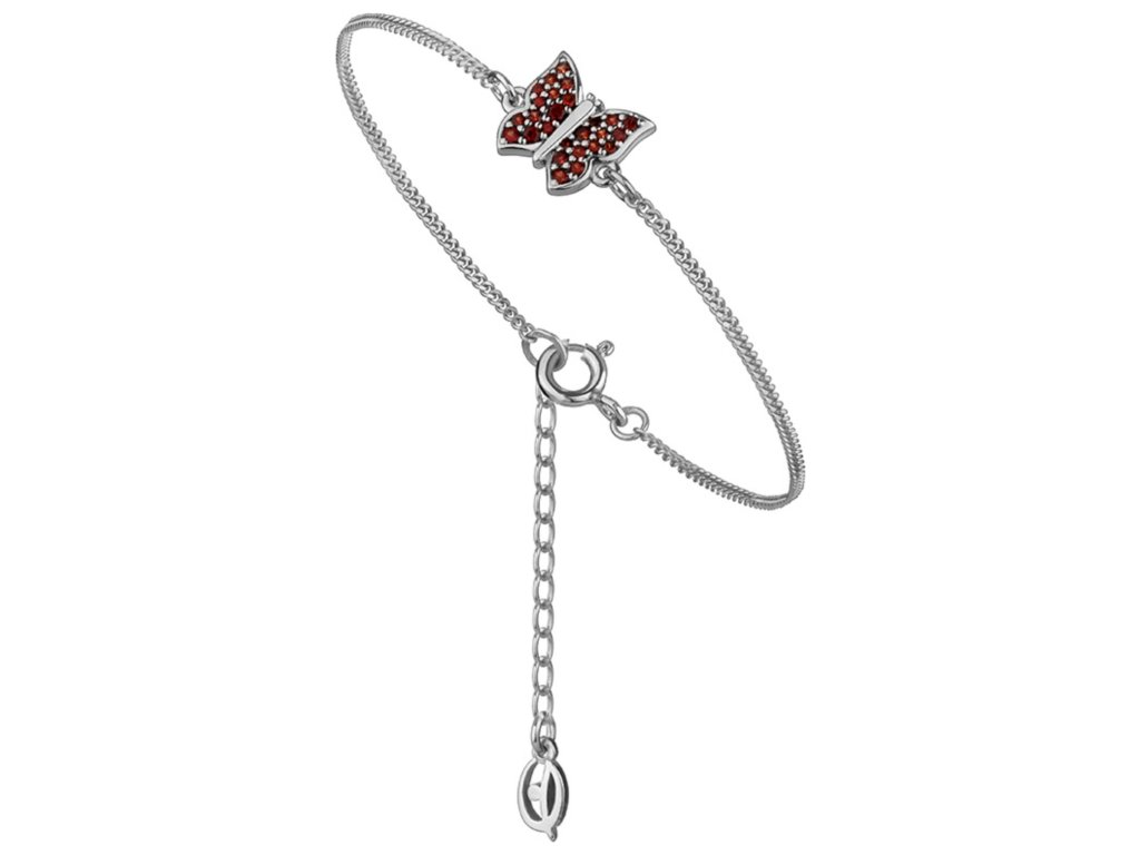 Silver bracelet with czech garnet, rhodium plated, animal - butterfly