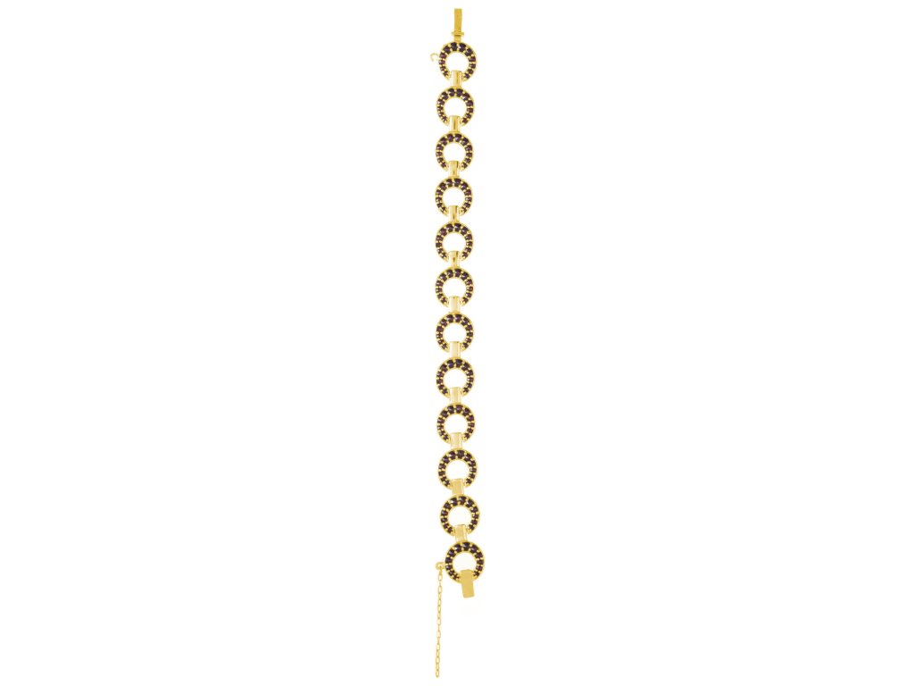 Silver bracelet with czech garnet, gold plated - circle