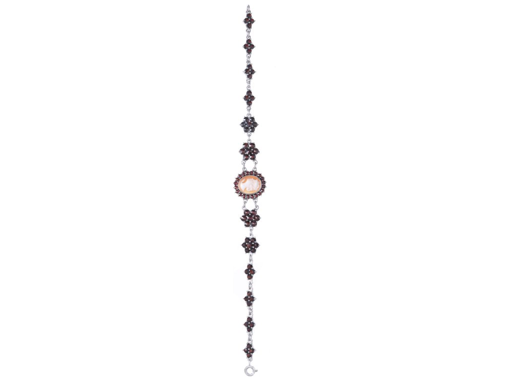 Silver bracelet with czech garnet and cameo, rhodium plated - oval