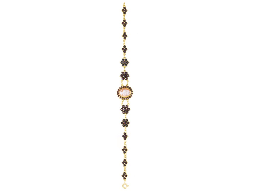 Silver bracelet with czech garnet and cameo, gold plated - oval