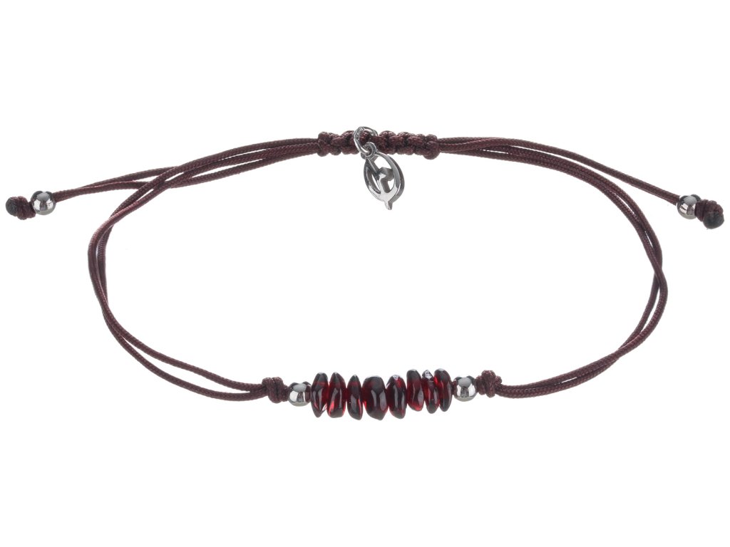 Silver bracelet Shamballa with czech garnet, rhodium plated