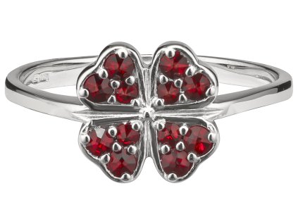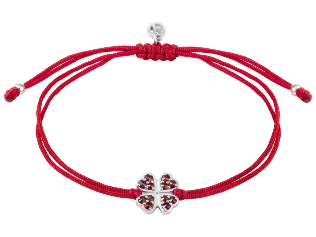 Silver bracelet Shamballa with czech garnet, rhodium plated - four-leaf clover