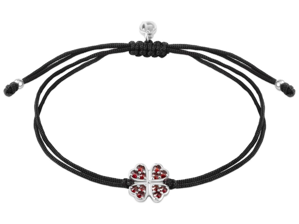Silver bracelet Shamballa with czech garnet, rhodium plated - four-leaf clover