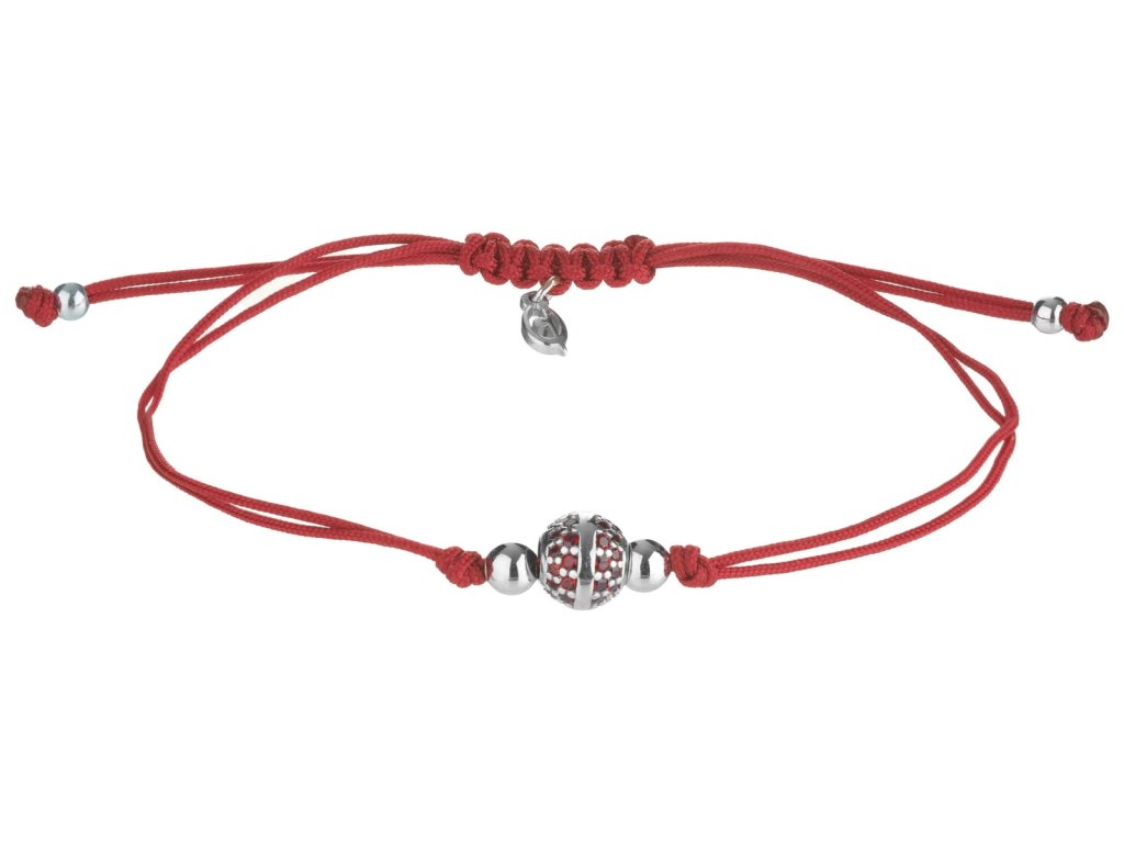 Silver bracelet Shamballa with czech garnet, rhodium plated - ball
