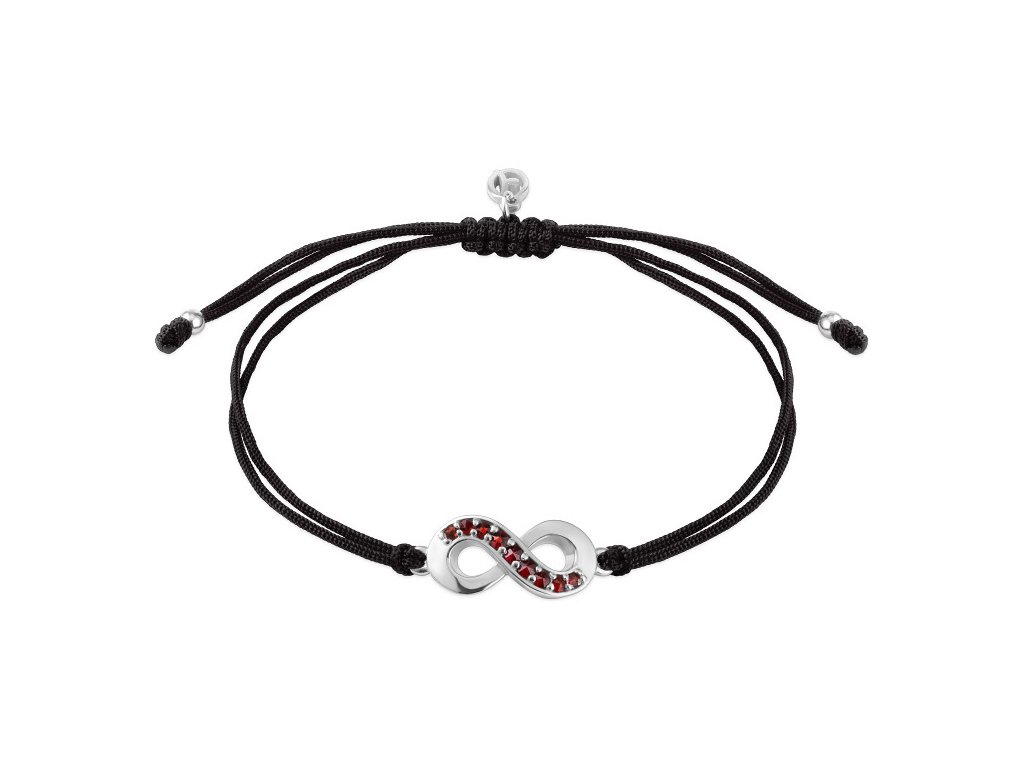 Silver bracelet Shamballa with czech garnet, rhodium plated - infinity