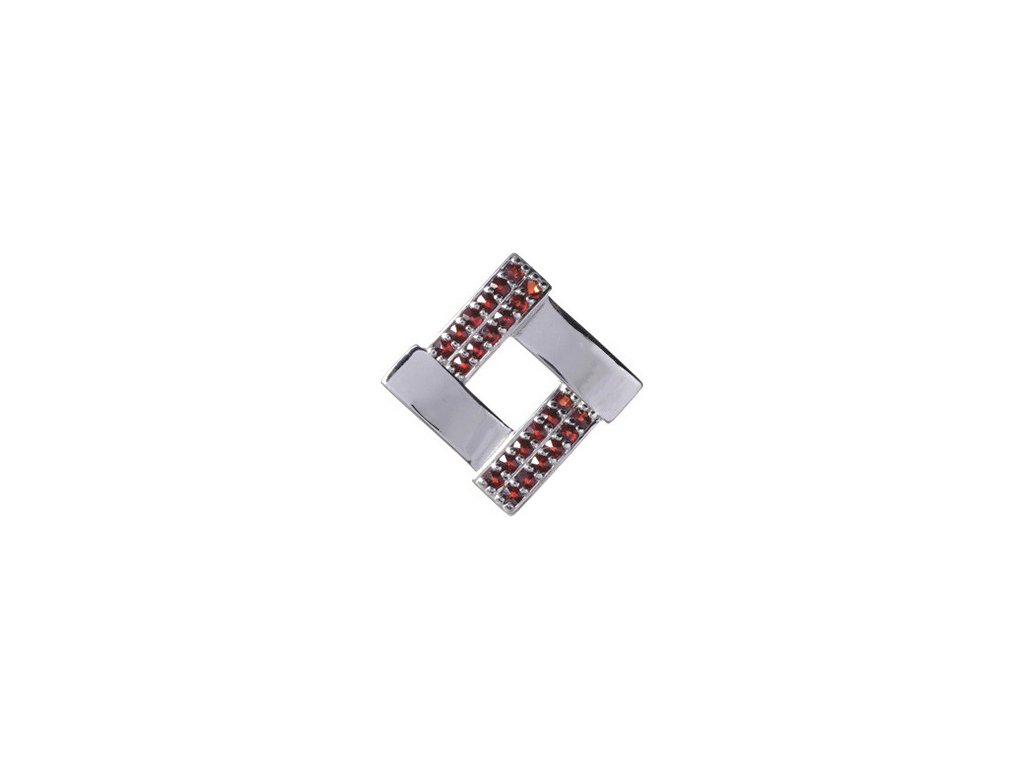 Silver pendant with czech garnet, rhodium plated - square