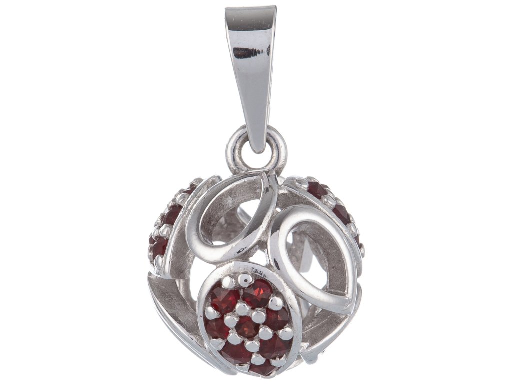 Silver pendant with czech garnet, rhodium plated - ball
