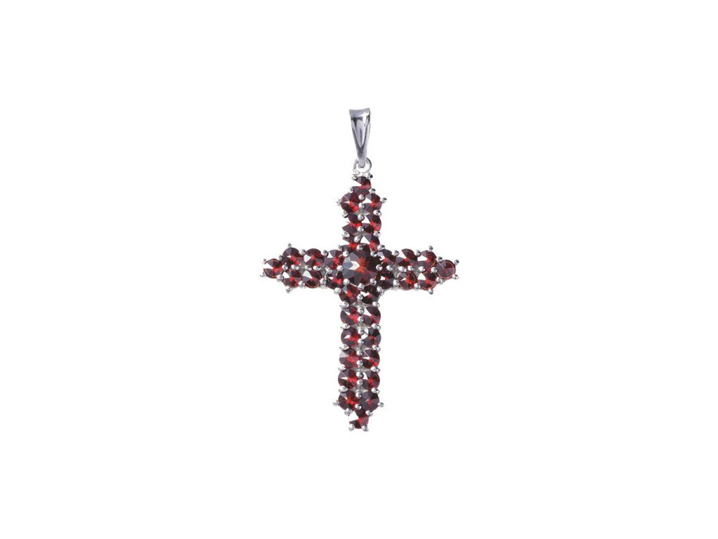 Silver pendant with czech garnet, rhodium plated - cross