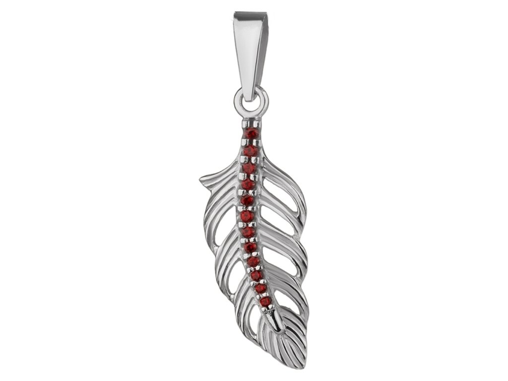 Silver pendant with czech garnet, rhodium plated - feather