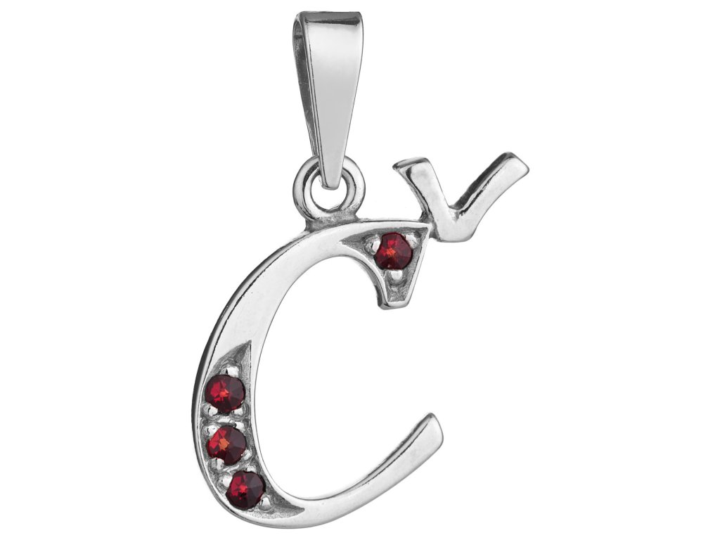 Silver pendant with czech garnet, rhodium plated - letter Č