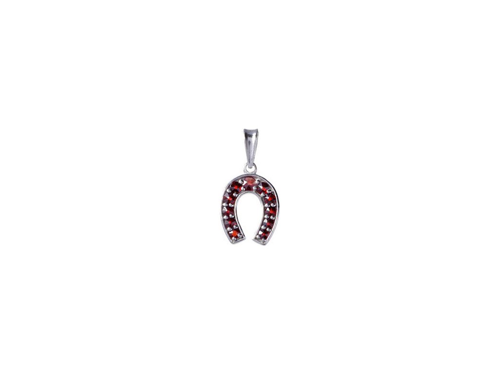 Silver pendant with czech garnet, rhodium plated - horseshoe