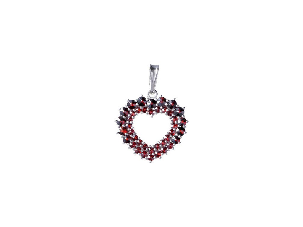 Silver pendant with czech garnet, rhodium plated - heart