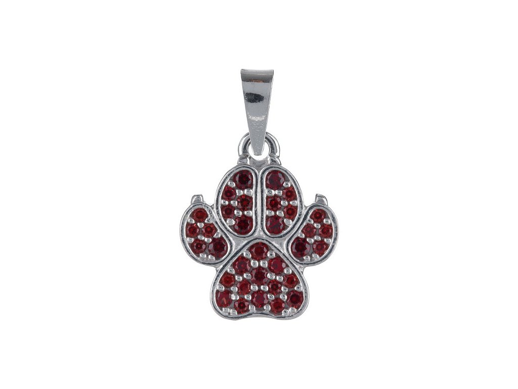 Silver pendant with czech garnet, rhodium plated - paw