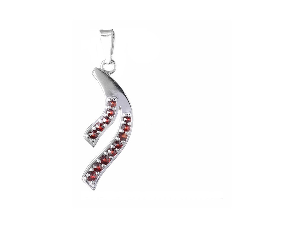 Silver pendant with czech garnet, rhodium plated - wave