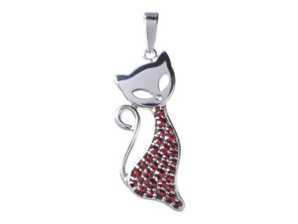Silver pendant with czech garnet, rhodium plated, animal - cat