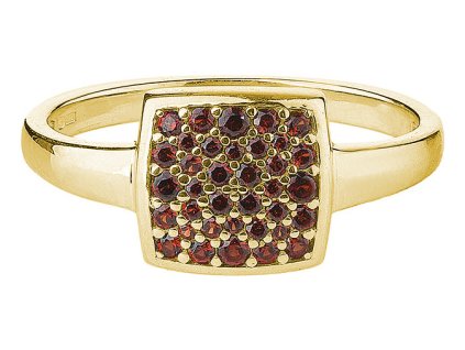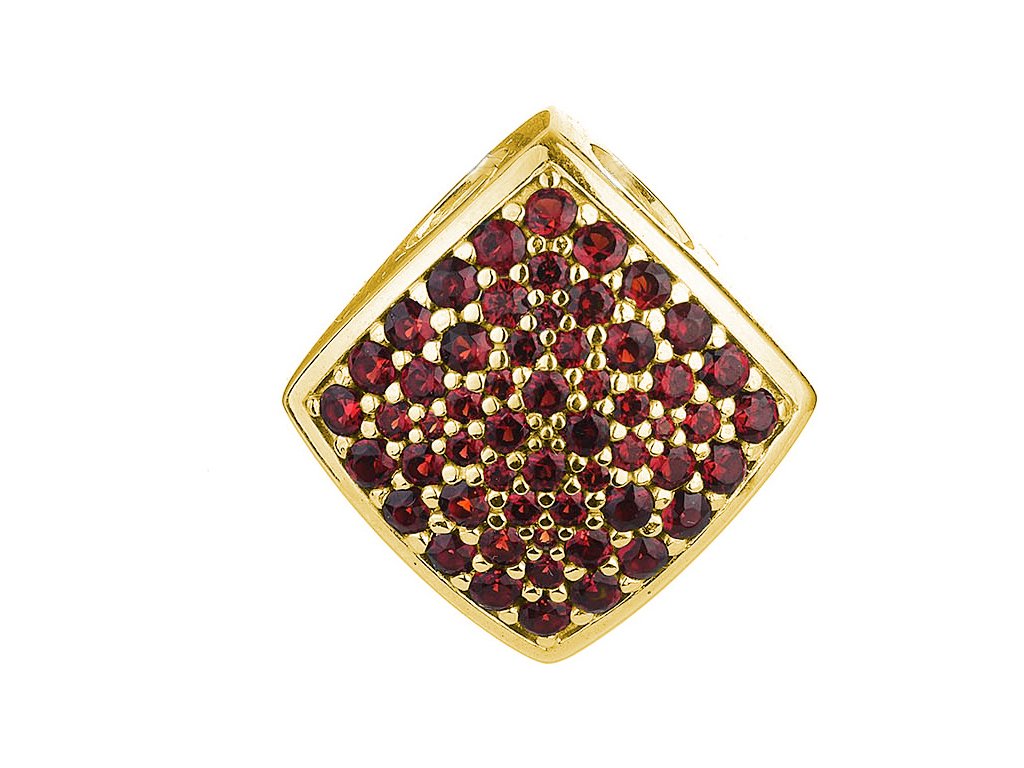 Silver pendant with czech garnet, gold plated - square