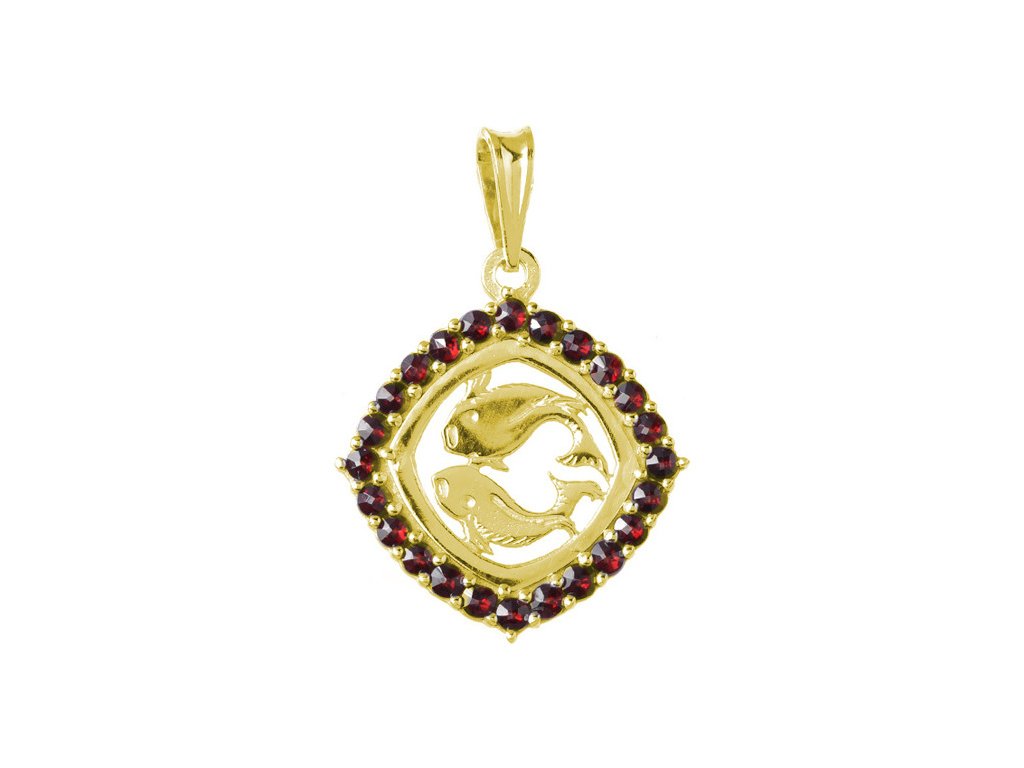 Silver pendant with czech garnet, gold plated, zodiac sign - fish