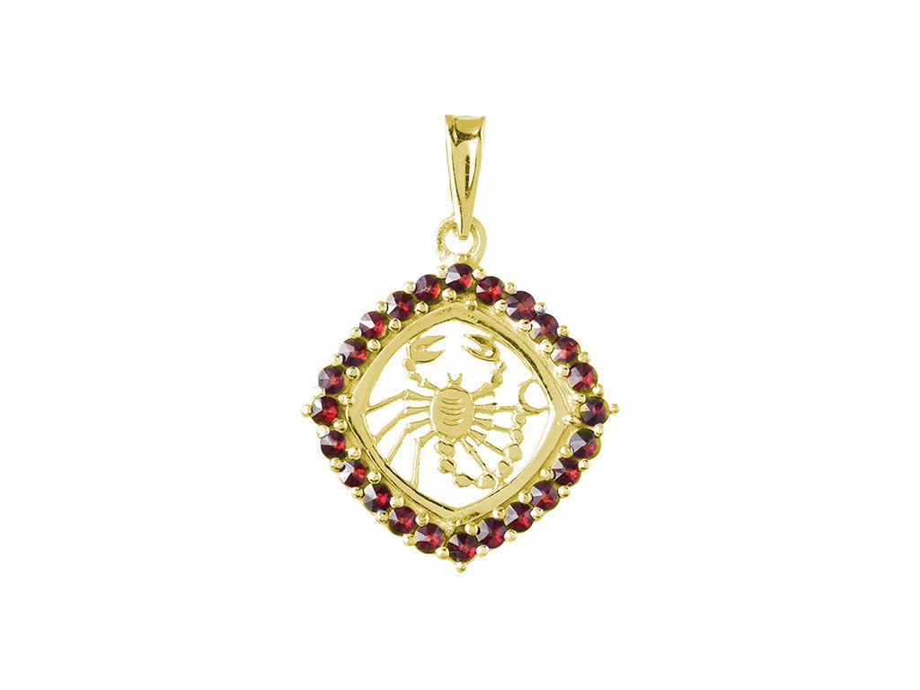 Silver pendant with czech garnet, gold plated, zodiac sign - scorpio