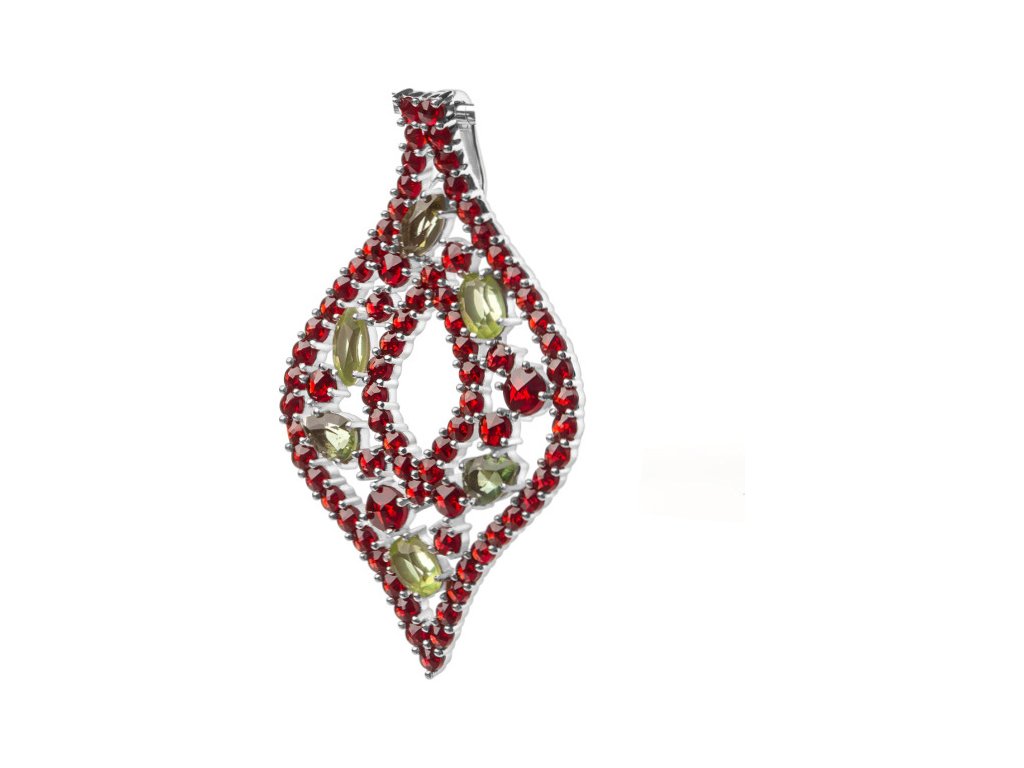 Silver pendant with czech garnet and moldavite and peridot, rhodium plated - tip