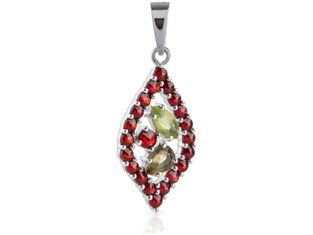 Silver pendant with czech garnet and moldavite and peridot, rhodium plated - tip