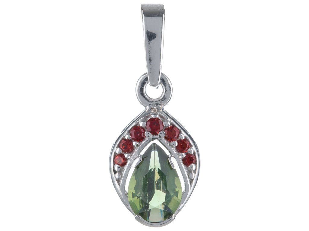 Silver pendant with czech garnet and moldavite, rhodium plated - drop