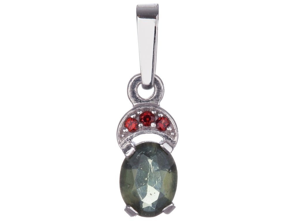 Silver pendant with czech garnet and moldavite, rhodium plated - oval
