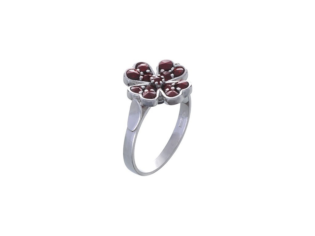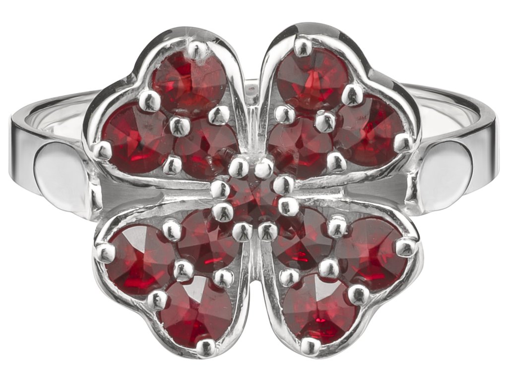 Silver ring with czech garnet, rhodium plated - four-leaf clover